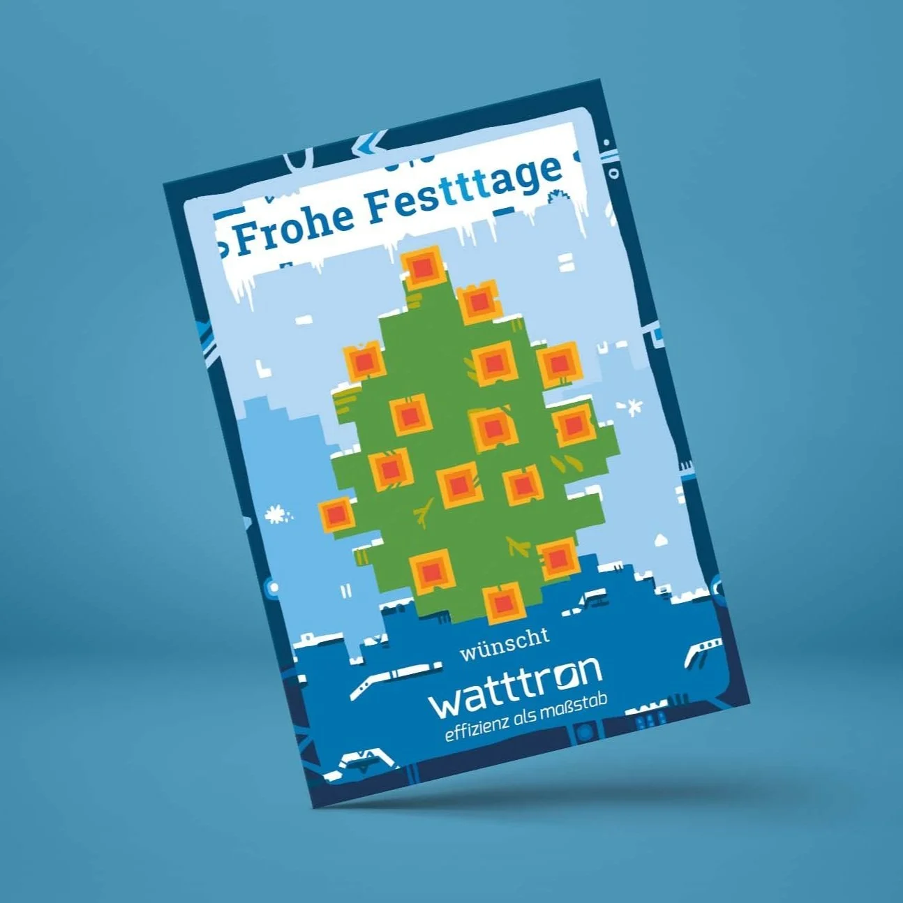 Meine Aufgabe war es, eine Illustration zu entwerfen, welche die thermischen Fertigungsprozesse (vereinfachtes Wärmebild) und winterliche Landschaft vereint. Gemeinsam mit anderen weihnachtlichen Give-aways werden diese Postkarten an Kunden verschickt.